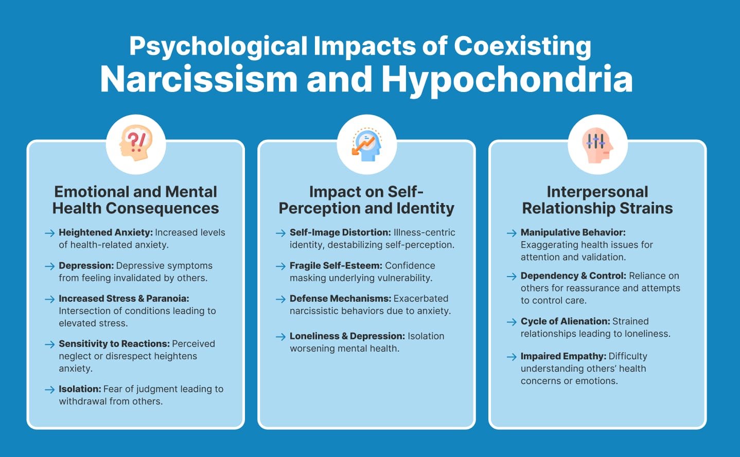 The coexistence of narcissism and hypochondria can lead to profound psychological impacts, not only affecting the individuals themselves but also those around them.